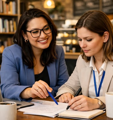 Processo orientado, mentoria de escrita, revisões, design editorial e registros.